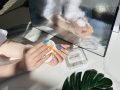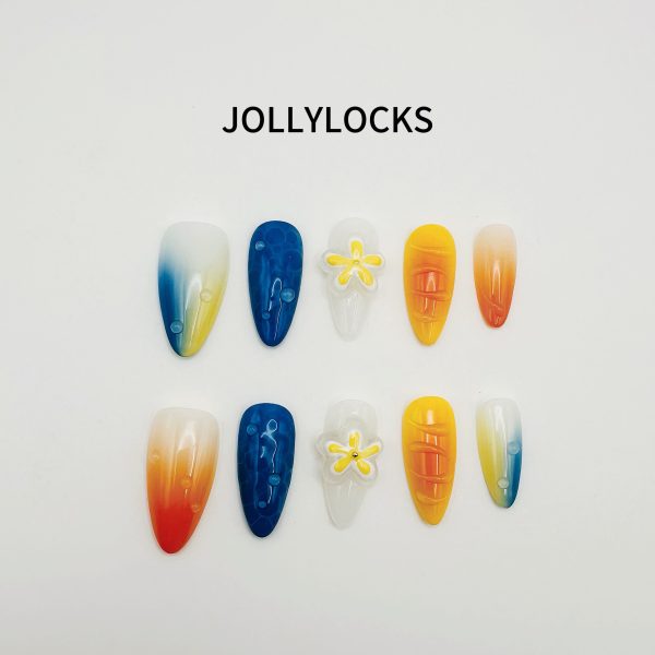Description: A stunning blend of golden orange and deep ocean blue, creating a sunset-inspired ombré effect. Embellished with delicate tropical florals, this design brings vacation vibes right to your fingertips.